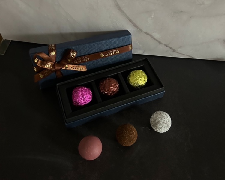 バレンタインデーにぴったりの「アカイトリオリジナル3種のトリュフチョコレート」と、